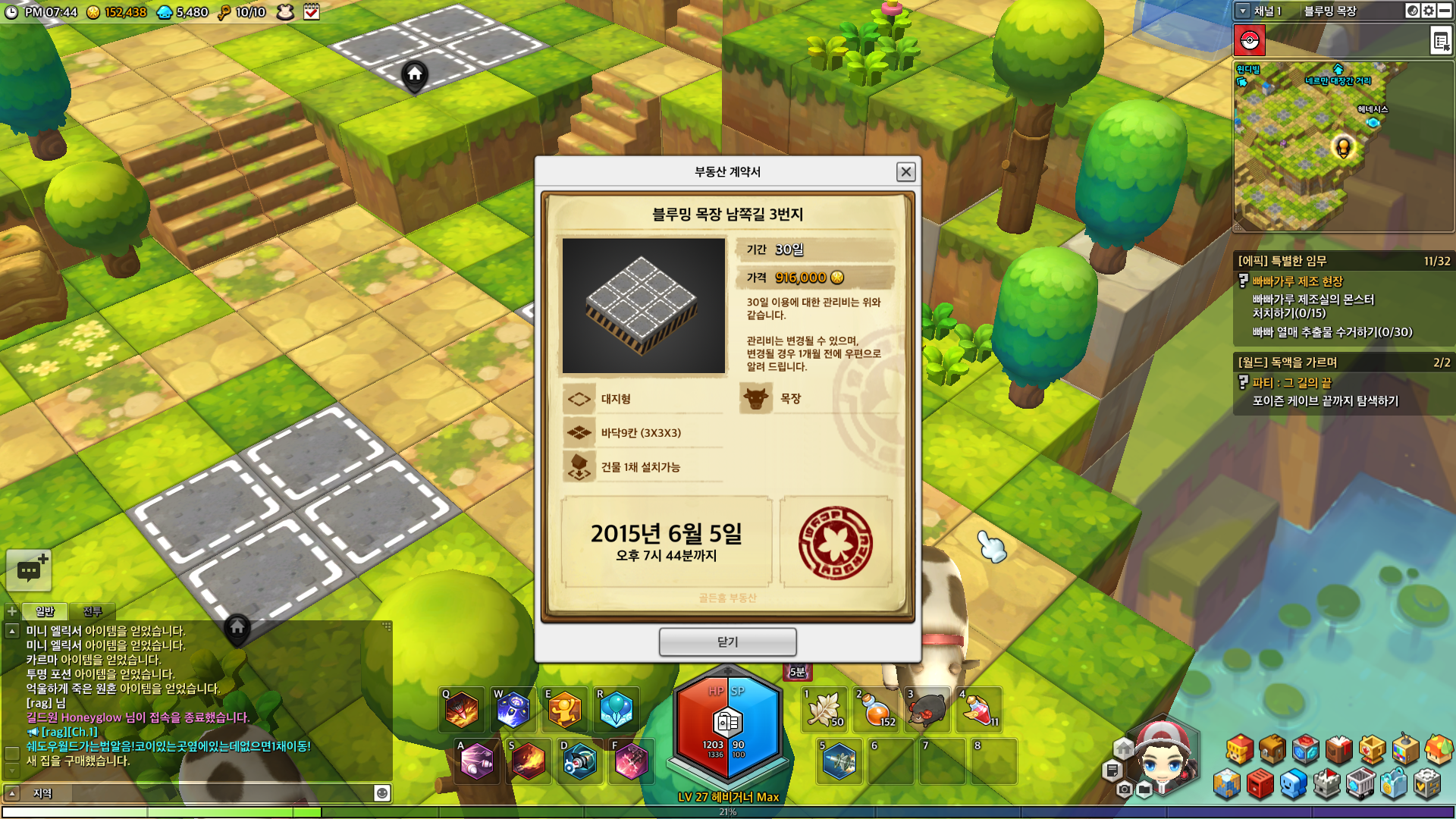 So… I bought some land. It cost like 900k mesos!! The saddest thing was I spent all of my money on the land and ended up not having enough money to buy a building to put on it, so I had nothing to decorate. R.I.P. my mesos.