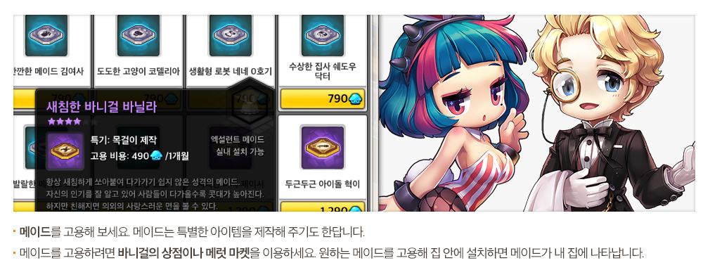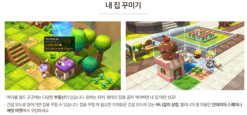 Decorate your own house (the inside and the outside!) as well! You can buy decoration items in the Bunny Girl’s Shop, Interior Square in Ellinia, or from the Merit Market.