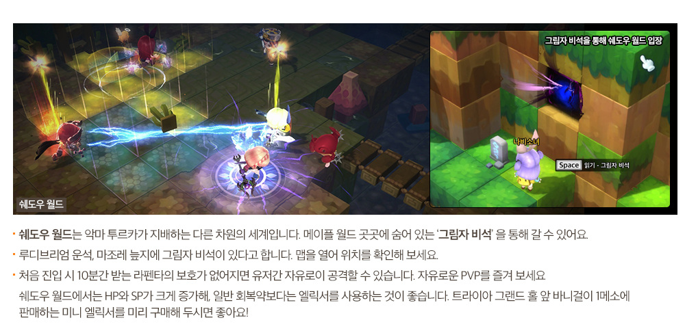 You can also go to Shadow World, which is open world PvP. Fight alone or join a party to protect yourself from other Maplers.