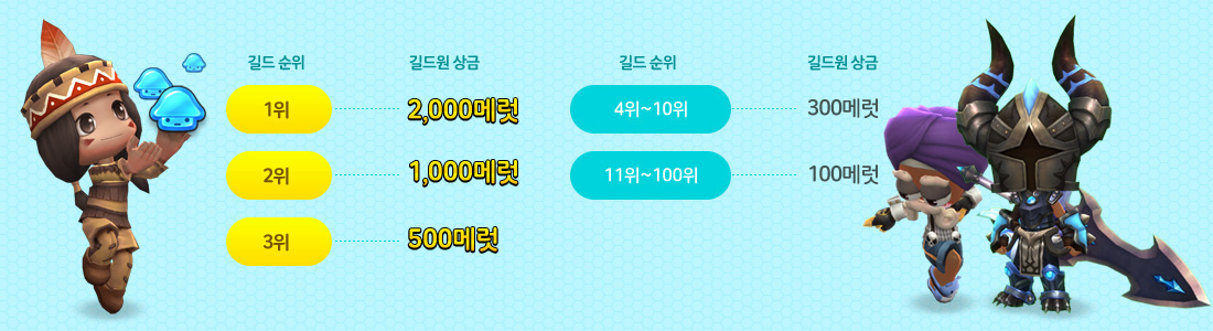 As you fight other guilds, you’ll increase your rank and collect Proofs of Valor. At the end of the season, the top 100 guilds will be rewarded with Merit! All guild members will receive the rewards.