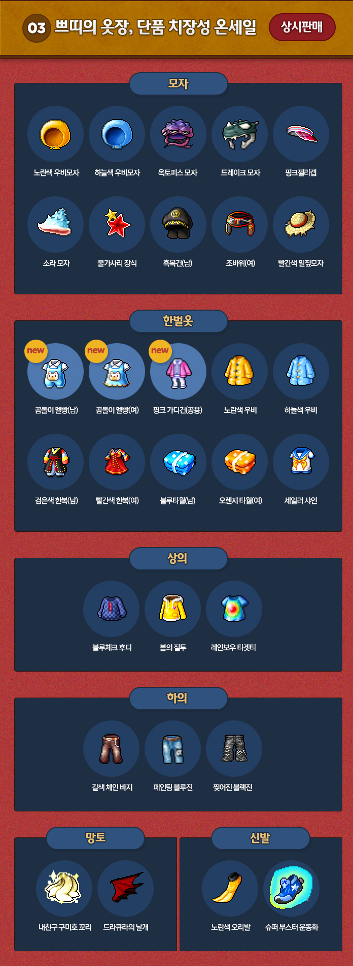 In the Cash Shop, the Take Care of Petite’s Wardrobe event has begun, with a bunch of sales.
