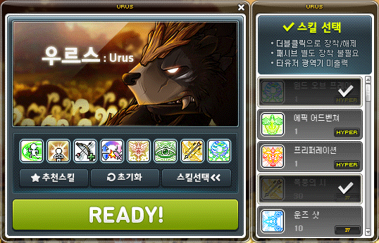 • Before entering the fight against Urus, you must choose up to 8 skills to use (all other skills will be restricted). All passives and movement skills cannot be selected and will be applied regardless of selected skills. For large area skills or install skills, they will be invisible to other users. (Large area skills either (1) have a range of 200,000 pixels or more or (2) can hit 14 enemies or more).