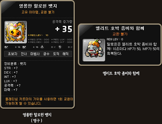 If you can defeat 100 Elite Pumpkin Zombies, you’ll receive the Brilliant Halloween Badge (7 all stats, 7 attack and magic attack, untradeable, tradeable with the Platinum Karma Scissors, permanent) and the Together with the Elite Pumpkin Zombie chair!