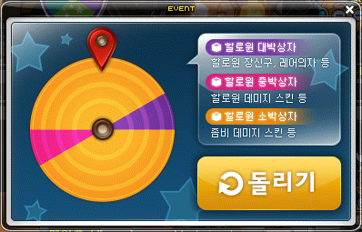 The wheel has 3 possible prizes: the orange gives you the Halloween Regular Box, the pink gives the Halloween Good Box, and the purple gives the Halloween Great Box.