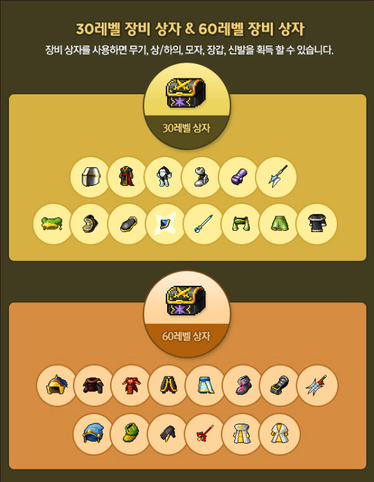 Home > kMS ver. 1.2.248 – Heroes of Maple: REBORN! > Level 30 and 60 Equipment Boxes