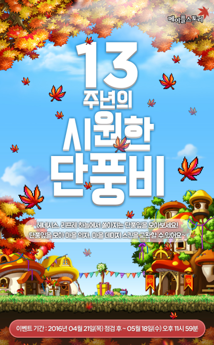 Home > KMS ver. 1.2.255 – MapleStory’s 13th Anniversary! > 13th Anniversary’s Cool Maple Rain