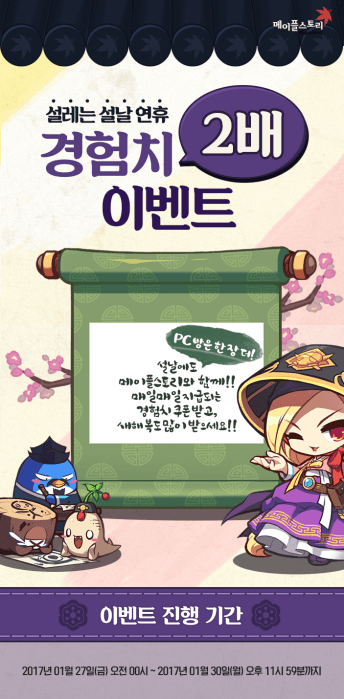 Home > KMS ver. 1.2.271 – MapleStory BEYOND: Union! > exciting-new-years-holiday-2x-experience
