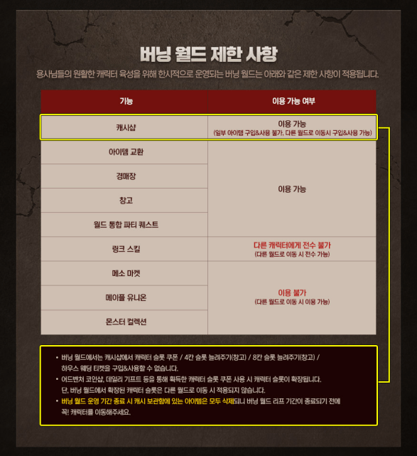 burning world limitations