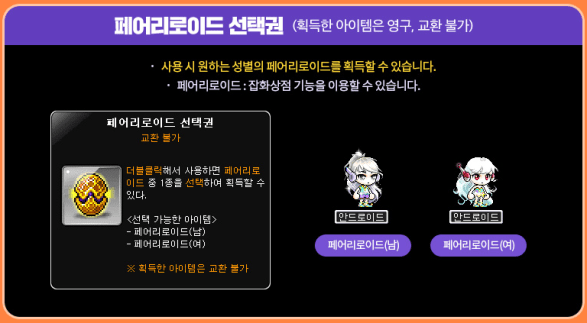Home > KMS ver. 1.2.335 – MapleStory AWAKE! > Selective Fairyroid Voucher