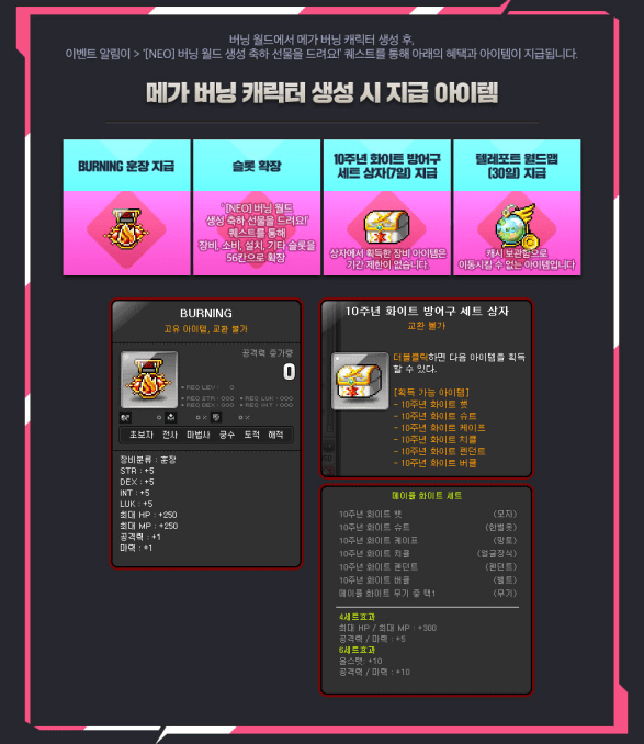 Home > KMS ver. 1.2.341 – MapleStory NEO: Signal! > Mega Burning Character Creation Rewards
