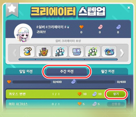 Home > KMS ver. 1.2.349 – Maple LIVE! > Creator Step Up Weekly Missions