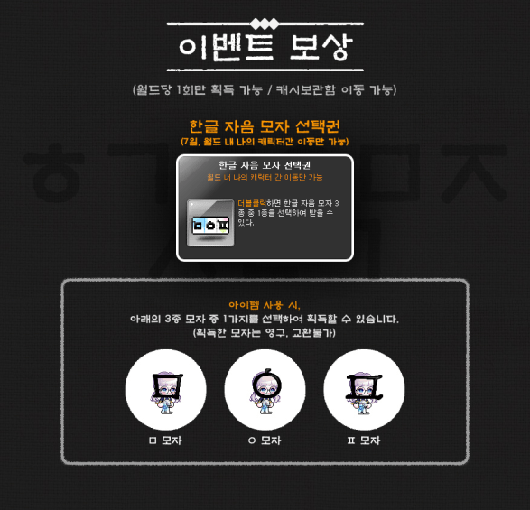 Home > KMS ver. 1.2.353 – Chu Chu Food Festival > Selective Hangul Consonant Hat Voucher