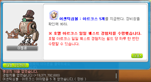 Home > KMST ver. 1.2.143 – Cygnus Remaster Skill Changes > Hotel Arcs Daily Quest Experience