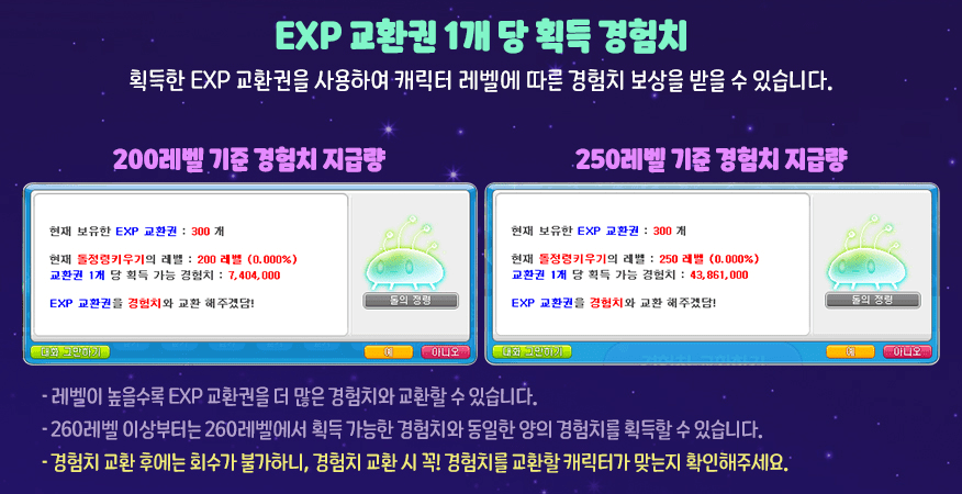 ※ The EXP Vouchers can be exchanged for experience only be characters level 200 or higher.