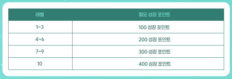 The amount of Growth Points required to level up the Rock Spirit are as follows.