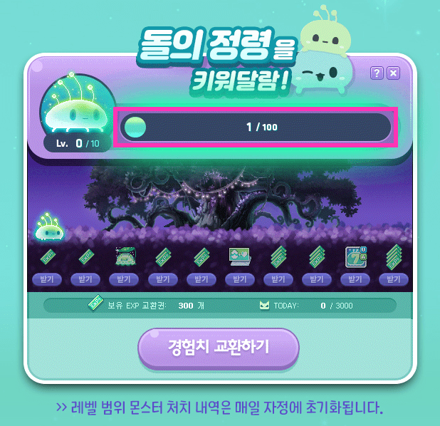※ The monsters within your level range defeated per day will be reset every day at midnight.