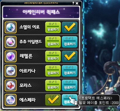 • Common: Erda Nova, Erda Shower, Ethereal Form, Spider in Mirror, Maple World Goddess’ Blessing, Empress Cygnus’ Blessing, Transcendent Cygnus’ Blessing, Cygnus Phalanx