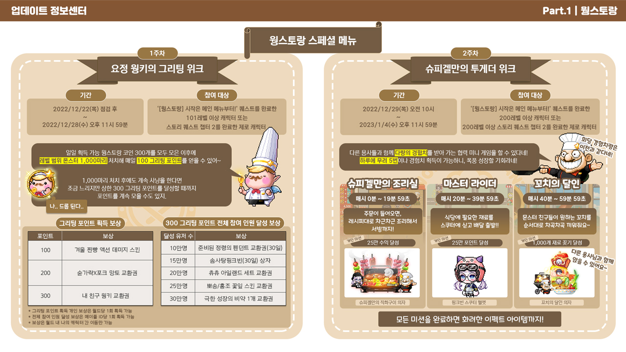 The first patch of the MapleStory Savior update has been released! It includes various improvements to the overall growth experience, the Star Force system, and many skill changes. The main event for this winter, Fairy Wonky’s Wongstaurant, has also begun!
