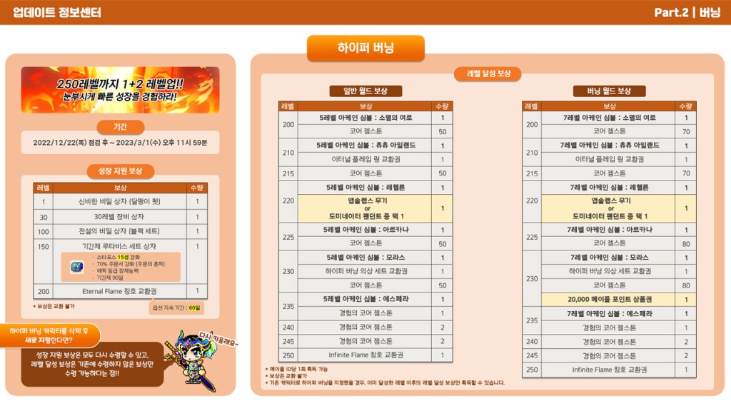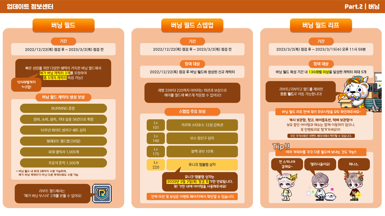 I tried out some new things in the post including anchor links to/from the overview, which I think will be pretty useful. Also I decided to stop covering Cash Shop updates since the rotations are never the same for every version lol. However, I’ll still add the more important information such as new Master Label/vac pet rotations and things like the BLACKPINK collaboration.