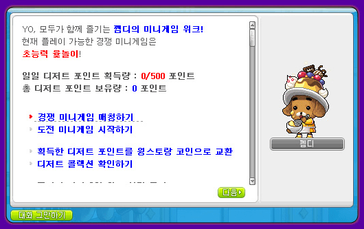 ※ If you leave OX Quiz before the game begins, you will not acquire Dessert Points.