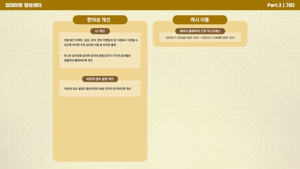 The Lady Blair’s Dream Express event will run from January 20 to January 24. During this time, you can freely move your Cash items between characters, regardless of cash restrictions.