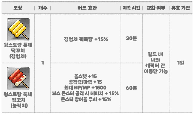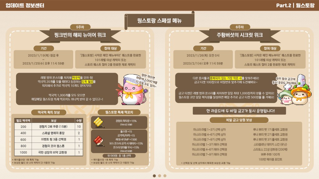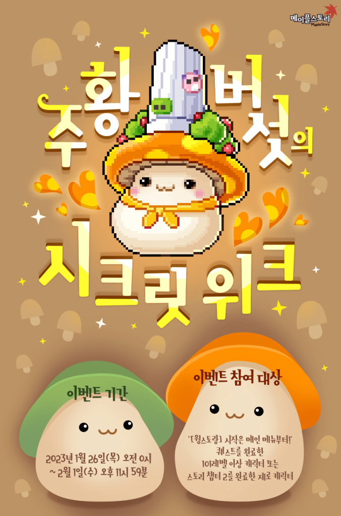 ※ After winning a prize, you can claim it through the ‘[Wongstaurant] Orange Mushroom’s Secret Week Information’ quest.
