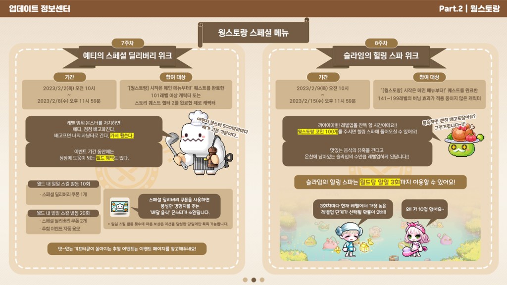 The Wongstaurant <Special Menu> – Slime’s Healing Spa Week event will run from February 9 to February 15. This event is available to all characters level 101 or higher.