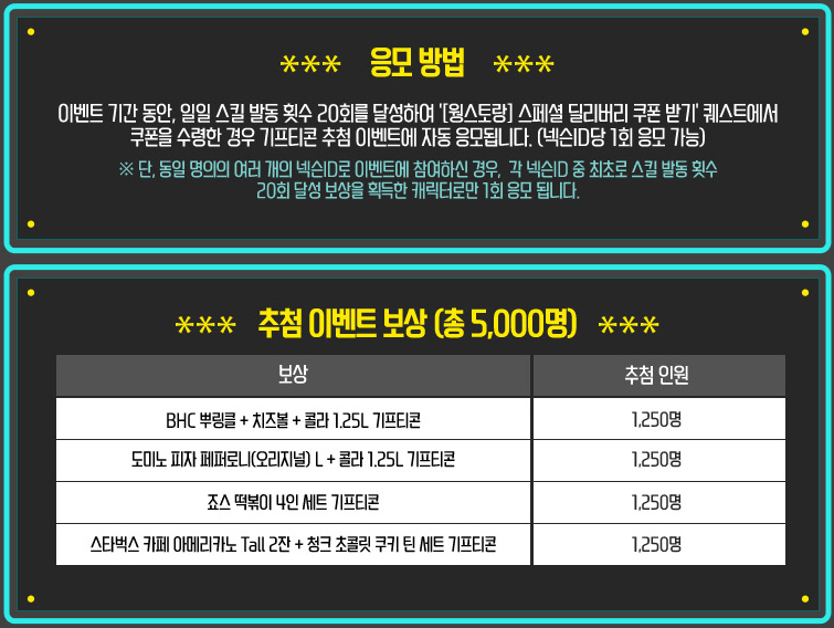 ※ You can only participate in the Gifticon Lottery event 1 time per Nexon ID.