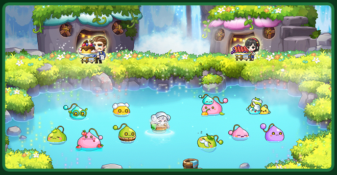 A sweet break prepated by Slime! Warm up your body at the Healing Spa and level up!