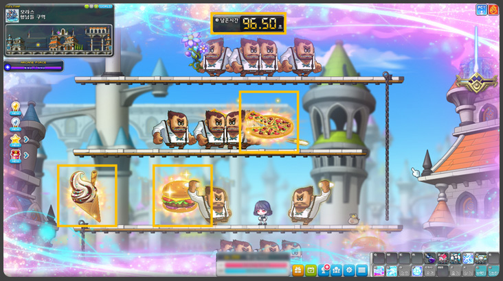 When you enter, you will have 2 minutes to attack the vegetable monsters. There are a total of 12 stages, and the next stage will begin when you defeat all of them. As the stages increase, the level, defenses, and health of the enemies will grow higher.