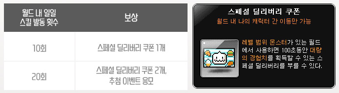 ※ The Special Delivery Coupons can only be used in maps with monsters within your level range, and cannot be used in maps where other players have already used a Special Dlivery Coupon.