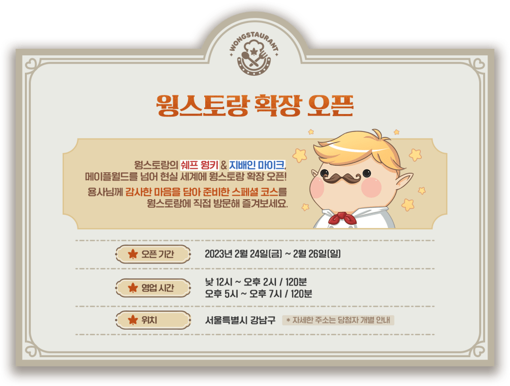 The real life Wongstaurant will be open from February 24 to February 26! The restaurant will be in Gangnam and you can even meet Chef Wonky and Manager Mike!