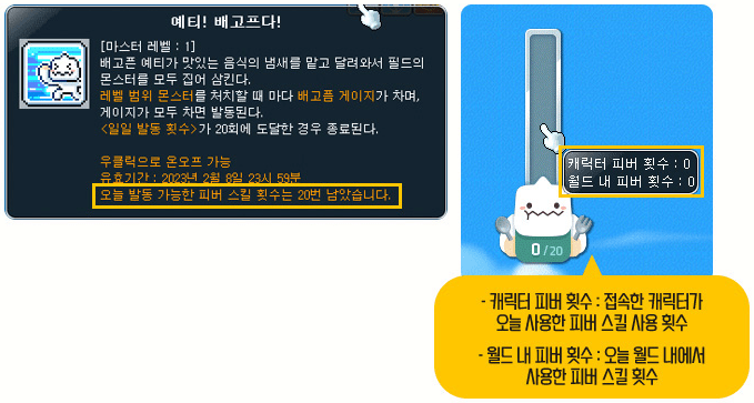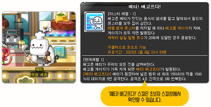 After accepting the quest, you will receive the Yeti! Hungry skill. When you defeat monsters within your level range, the Yeti’s Hunger Gauge will fill up. When it’s full, the Yeti will appear to attack monsters in a wide range and give a large amount of experience.