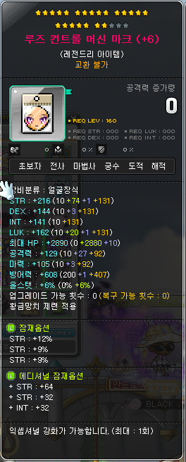 • (Legendary) LUK +7% → 8% (on Level 91~200 Equips), LUK +8% → 9% (on Level 201+ Equips)