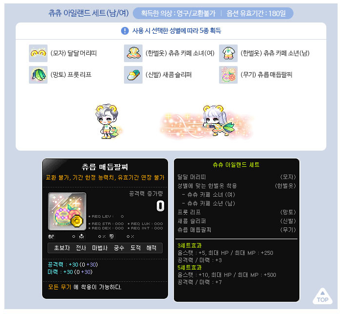 - (Unique) Max MP +7% → 8% (on Level 91~200 Equips), Max MP +8% → 9% (on Level 201+ Equips)