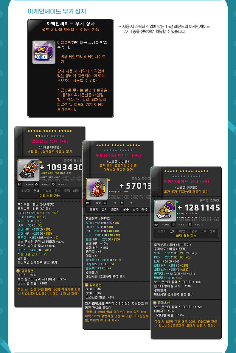 - (Legendary) STR +7% → 8% (on Level 91~200 Equips), STR +8% → 9% (on Level 201+ Equips)