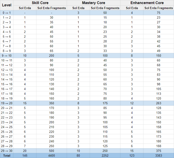 Hexa Matrix Sol Erda Costs