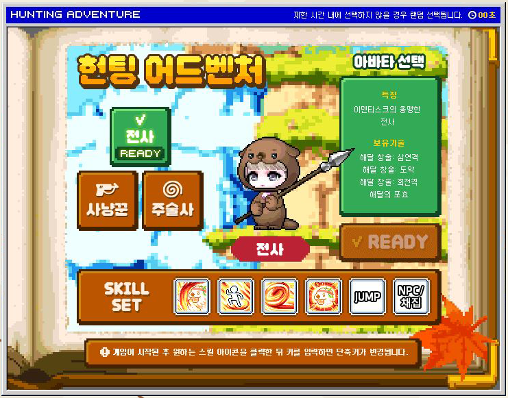 This is a cross-world game where 3 players will be matched, with a time limit of 30 minutes. After choosing between 3 jobs (Warrior, Shaman, Hunter) without any overlaps, players will be transformed into Sea Otters and will be able to use special skills.