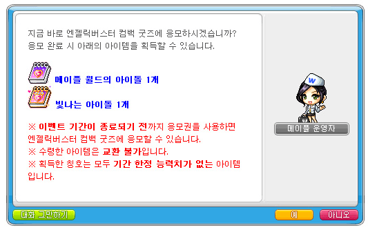 When used while transformed into Angelic Buster, you will return to your original appearance.