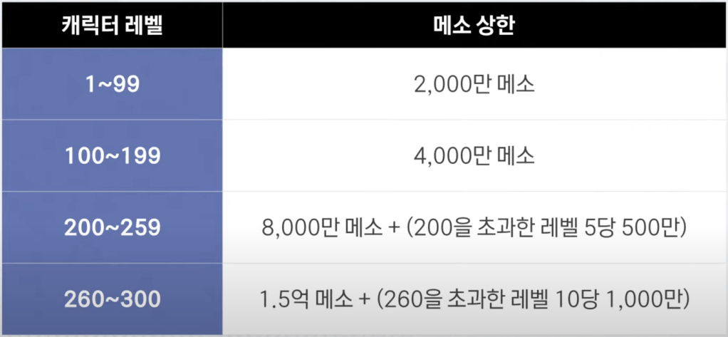 • Level 260~300: 150m mesos + (10m every 10 levels after 260)