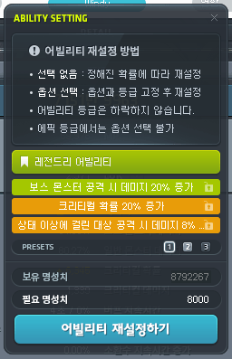 - After clicking the ‘Reset’ button in the Ability Reset window, it has been improved so that the Preset information being reset will be displayed one more time.
