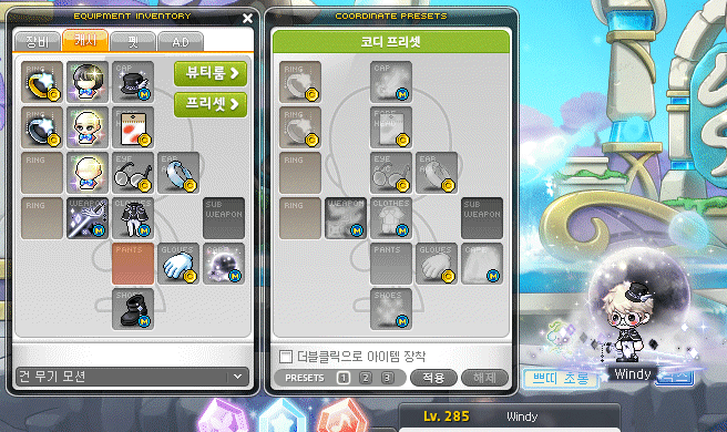 Outfit presets have been improved so that you can equip Cash items that provide stats and cosmetic Cash items separately.