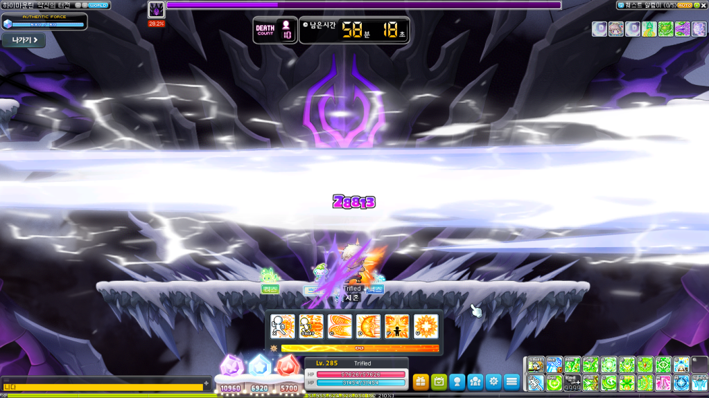 Here’s a picture from Stage 1. At the top, you’ll see the timer and progress bar. You must defeat enough monsters to fill up the progress bar to progress to the next stage. At the bottom, you’ll see the Mitra UI. As you defeat monsters, you’ll collect Authority, which fills up the bar (up to 1000).