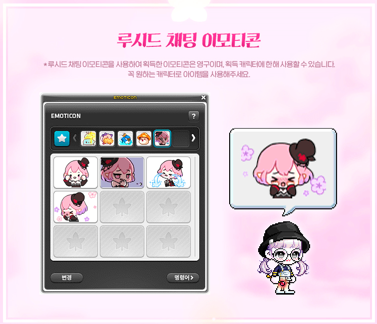 ※ When you use the ‘Lucid Chatting Emoticons’, the acquired emoticons can be used permanently.