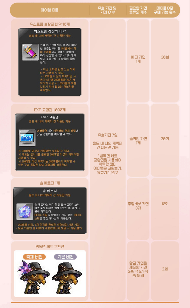 ※ The Sol Erda and Maple Gold Coins will expire 30 days after acquisition.