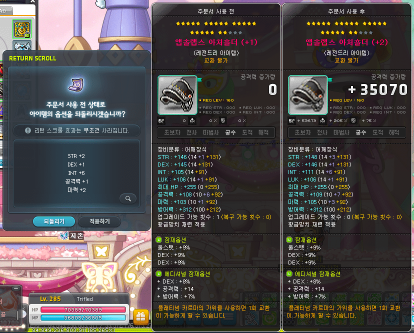 Then, in Regular Worlds only, you can choose to pay Maple Points to receive bonus rewards. You can pay 7,500 Maple Points to triple the rewards (3x experience, 3 Sol Erda, 6 Maple Gold Coins) or pay 15,000 Maple Popints to quintuple the rewards (5x experience, 5 Sol Erda, 10 Maple Gold Coins).