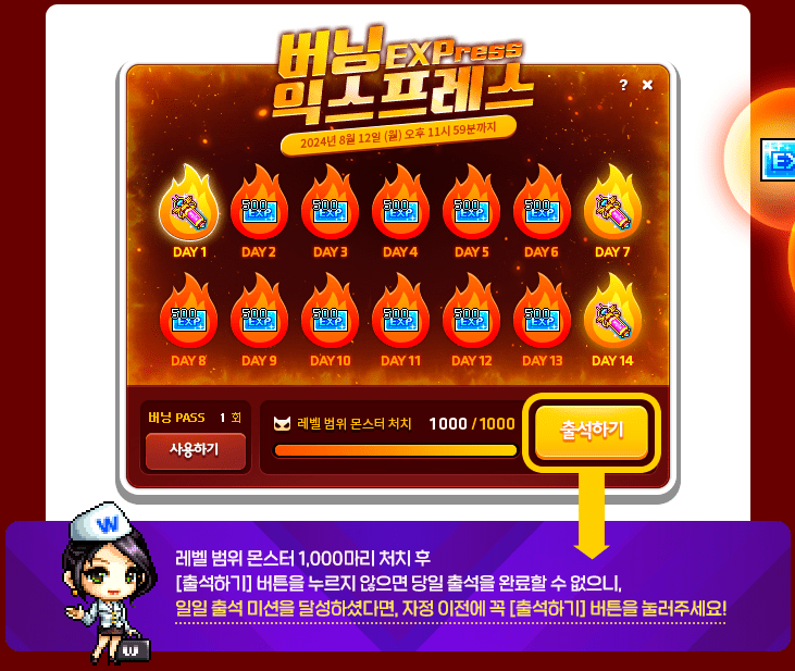 During the event period, you can leap your characters to your desired world through the NPC Isaga in Henesys. You can select the ‘Buring World Early Leap’ event in the Event List and click the ‘Participate’ button to move to Henesys.