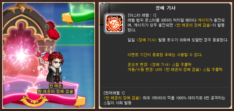 ※ You can right-click the ‘Von Leon’s Elite Swordsmanship’ skill icon in the skill window to select from Auto or Manual Use Mode. Once you have set them, the Mode will be maintained.