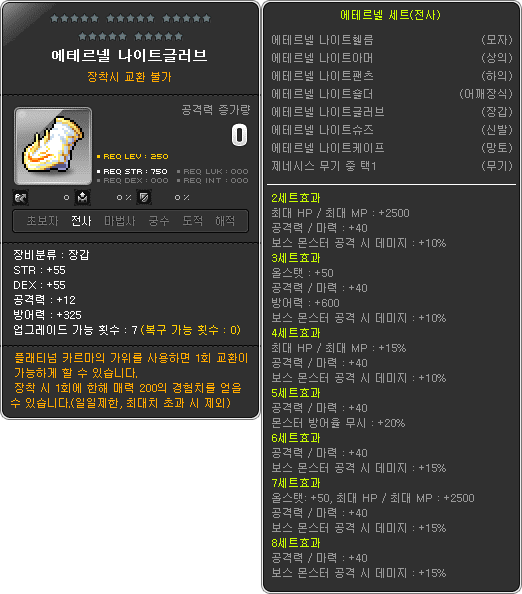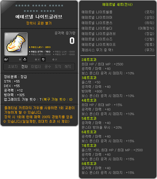 ※ You can use the Desired Ethernal Armor Box to acquire 1 Ethernal Shoes, Gloves, or Cape.