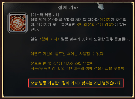 ※ If you use all 30 ‘Elite Knight activations per day per character, the skill will be deactivated.